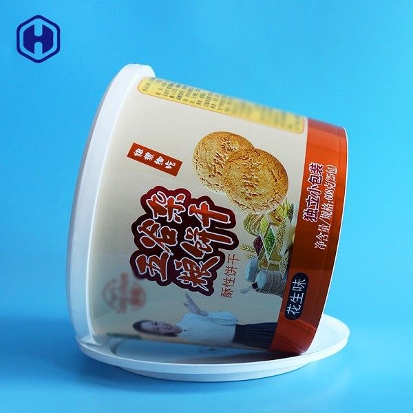 Baquets en plastique ronds imprimés de biscuits de conteneurs d'emballage alimentaire du seau pp du logo IML