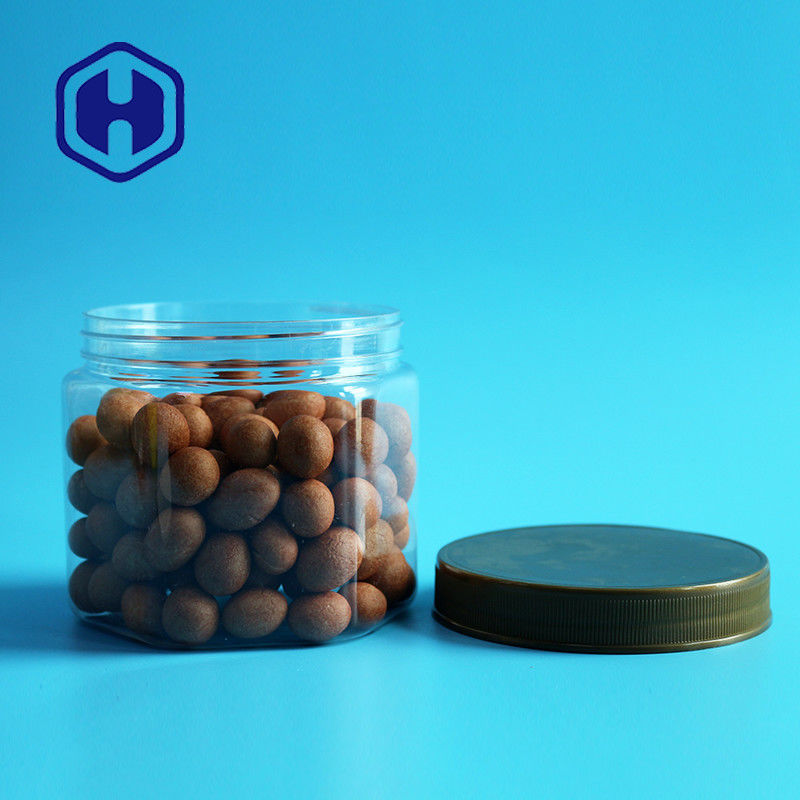 pots en plastique avec le couvercle à visser, nourriture en plastique de pots avec des couvercles à visser, pot avec le couvercle à visser, pots en plastique de catégorie comestible avec des couvercles à visser, pots en plastique de l'hexagone 450ml 15oz, pots en plastique d'arachides libres en vrac de bpa |