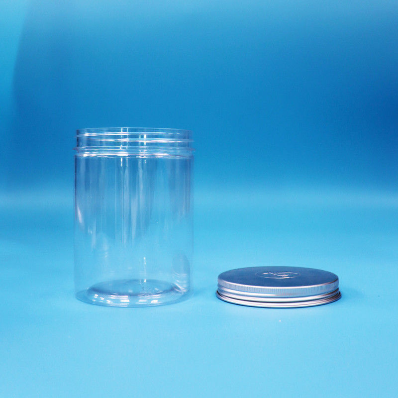 Bonbons biscuits nourriture pour bébés PET transparent étanche Bouteilles rondes en plastique en aluminium Couvercles