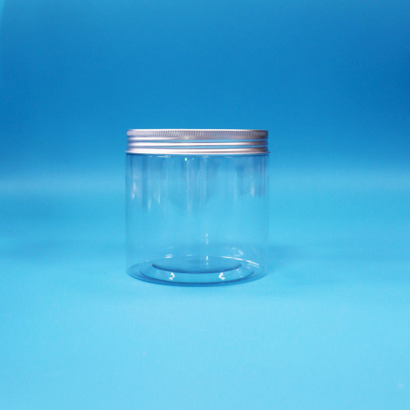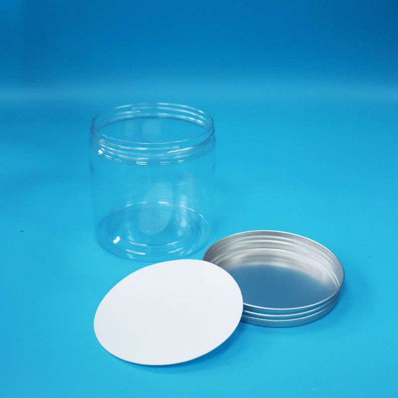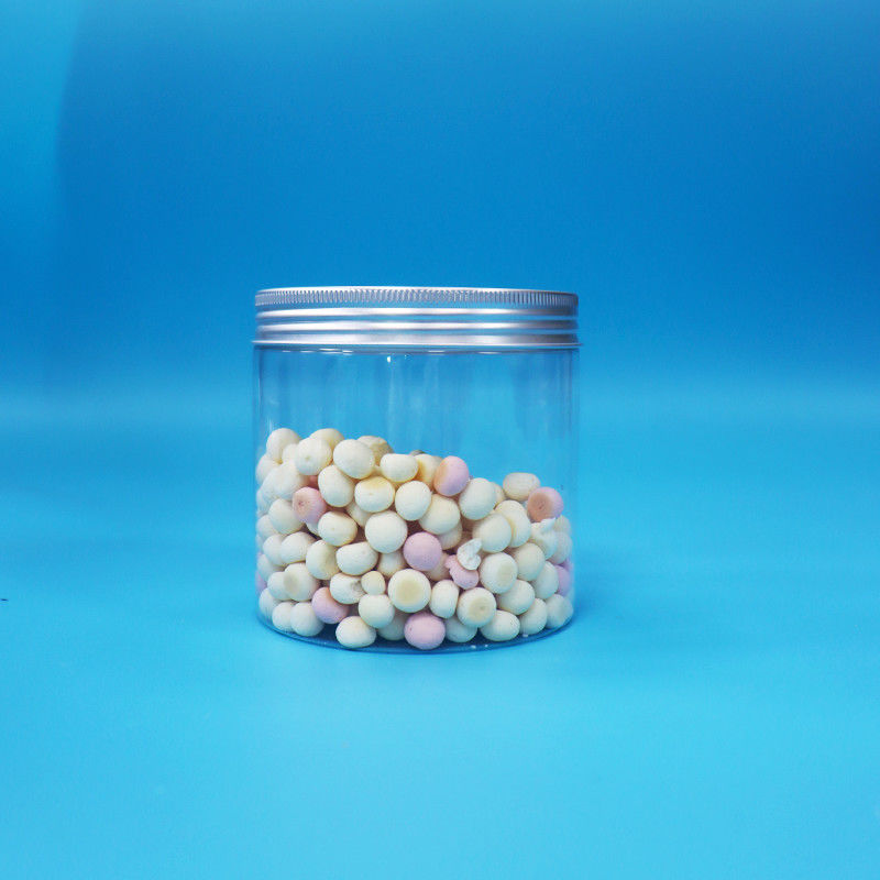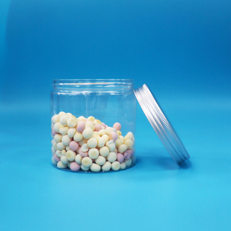 Bouche ronde large en forme de cylindre PET clair Des biscuits en plastique Jar Bouchon à vis en aluminium