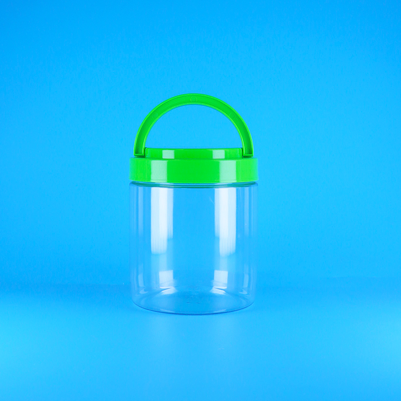 Pot en plastique PET transparent rond, scellable, de qualité alimentaire, pour beurre de cacahuète, avec bouchon à vis et poignée