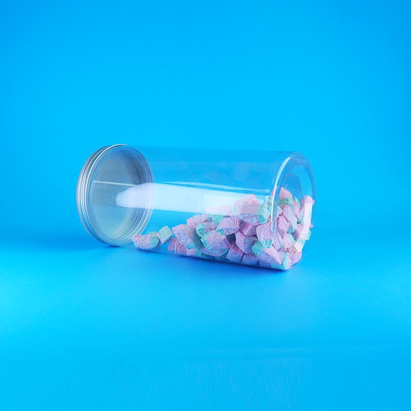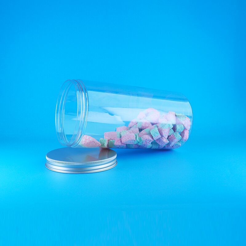 Bouches larges en aluminium, couvercles clairs, hauts, ronds, en plastique, biscuits de nourriture sèche, pots de bonbons